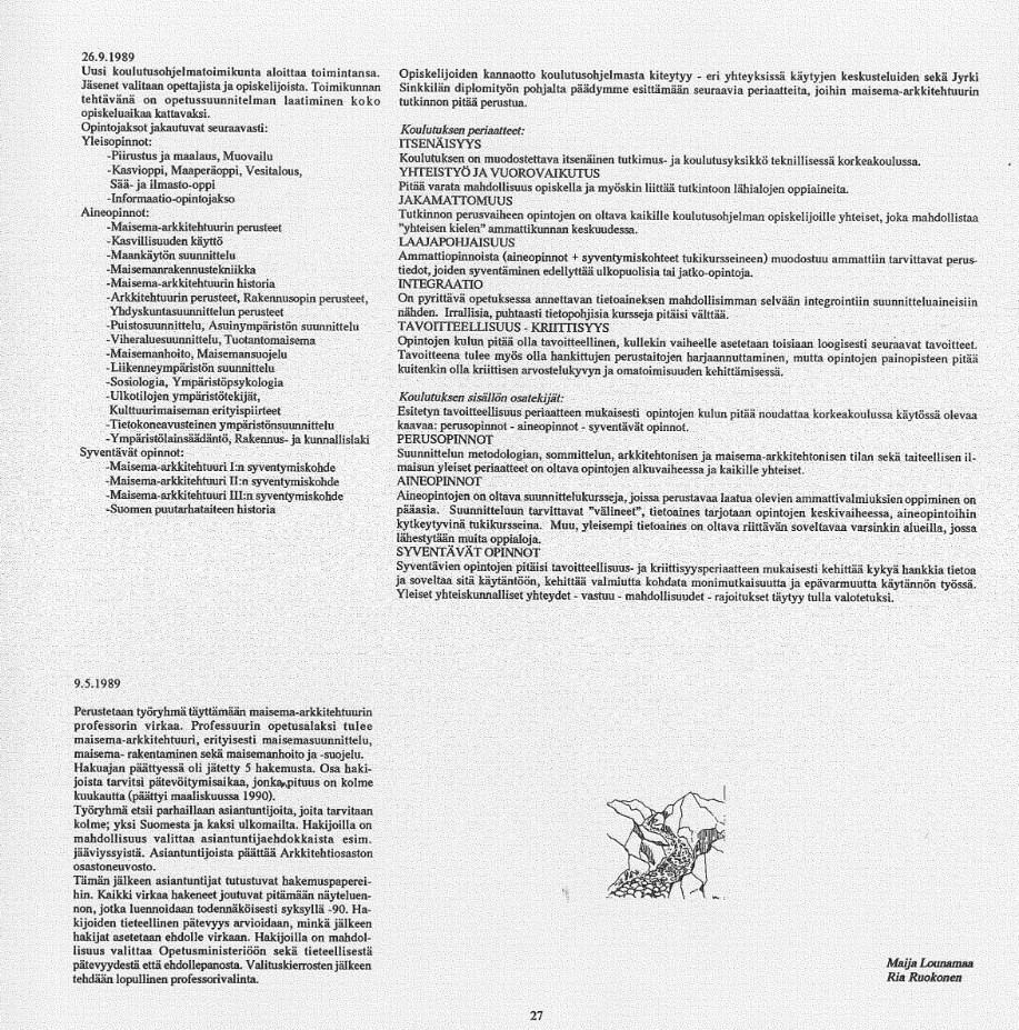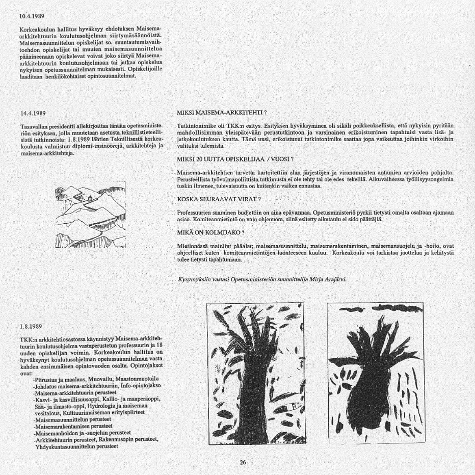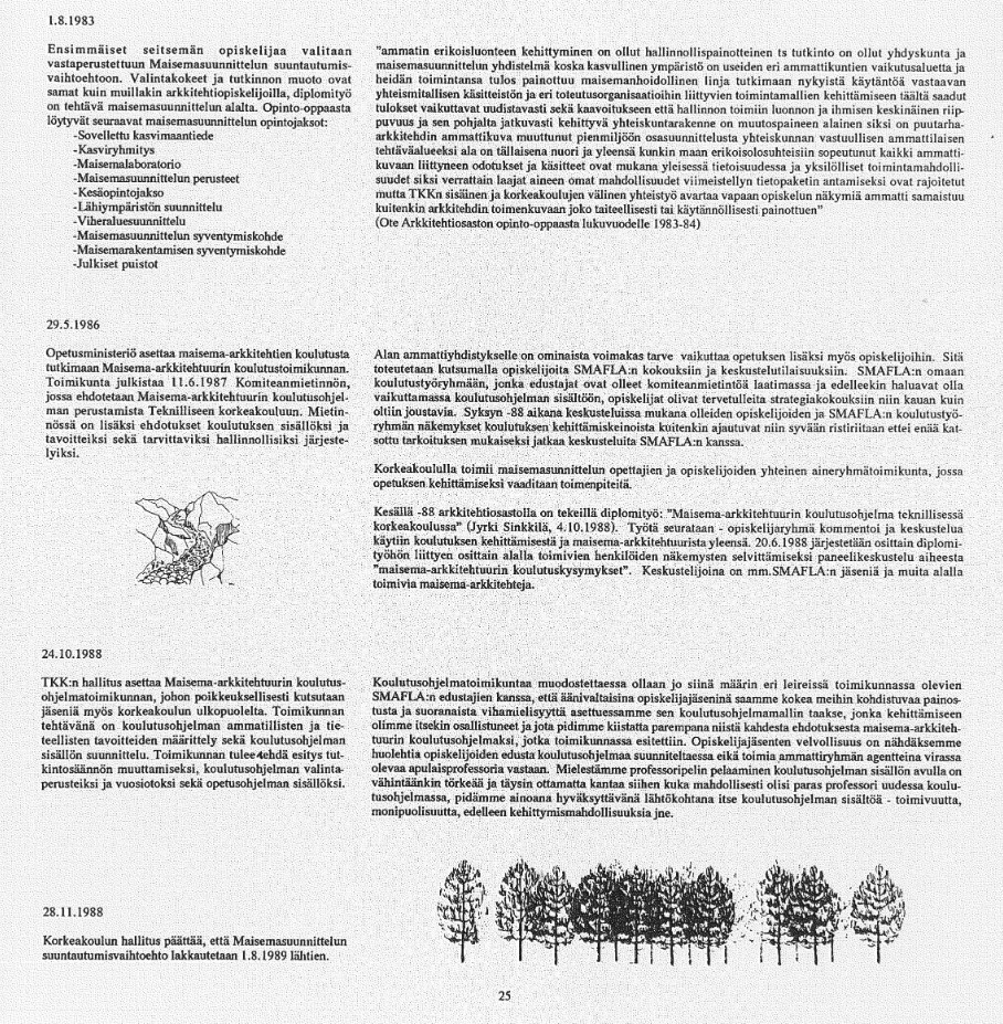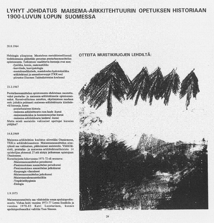 Millaisia kursseja kuului 1960-luvulla Helsingin yliopiston maatalous-metsätieteellisen tiedekunnan puutarha- ja maisema-arkkitehtuurin opiskelijoiden opintoihin? Milloin koulutus siirtyi Otaniemeen? Entä millaisiin periaatteisiin maisema-arkkitehtuurin koulutuksen tuli opiskelijoiden mielestä perustua? Tutustu alan opetuksen historiaan 1960-luvulta 1980-luvun lopulle: