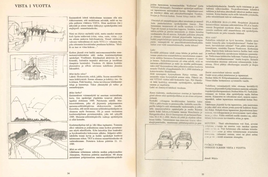 Maisema-arkkitehtuurin opiskelijayhdistys perustettiin 30 vuotta sitten, samoihin aikoihin kuin alan ensimmäinen oma koulutusohjelma Suomessa. Anneli Wilskan kirjoittamassa jutussa Vista 1 vuotta (Vitsas 1990) käydään läpi, mitä kerhon ensimmäisen vuoden aikana tapahtui ja mikä oli tulevaisuuden suunta. Yhtenä toiminnan muotona on mainittu oma lehti. Nyt vuosien ja vuosikymmenien jälkeen Vitsaksesta on tullut Ravista, ja paperisesti lehdestä on siirrytty nettisivuilla julkaistavaan juttusarjaan, jonka osana tämäkin postaus on julkaistu.